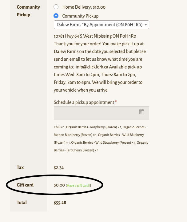 NEW: You can now choose to pick up a physical gift card with your regular Click Fork order or choose virtual delivery (by email).