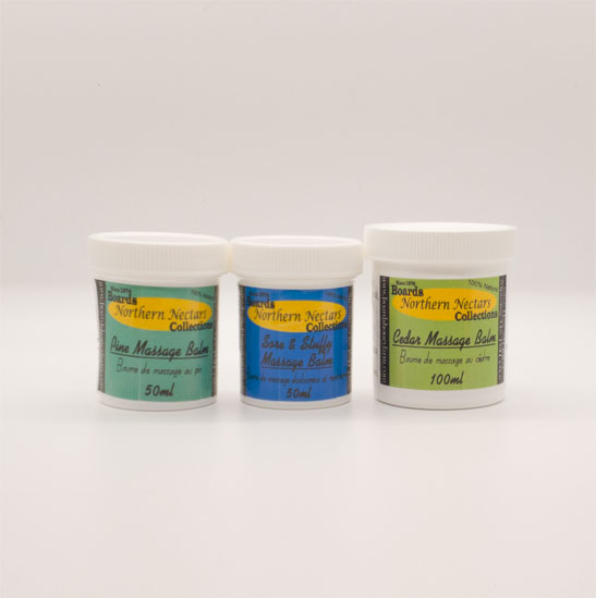Our massage balms are made with 100% natural beeswax, olive oil and cocoa butter. There are a variety of quality essential oil combinations to experiment with.