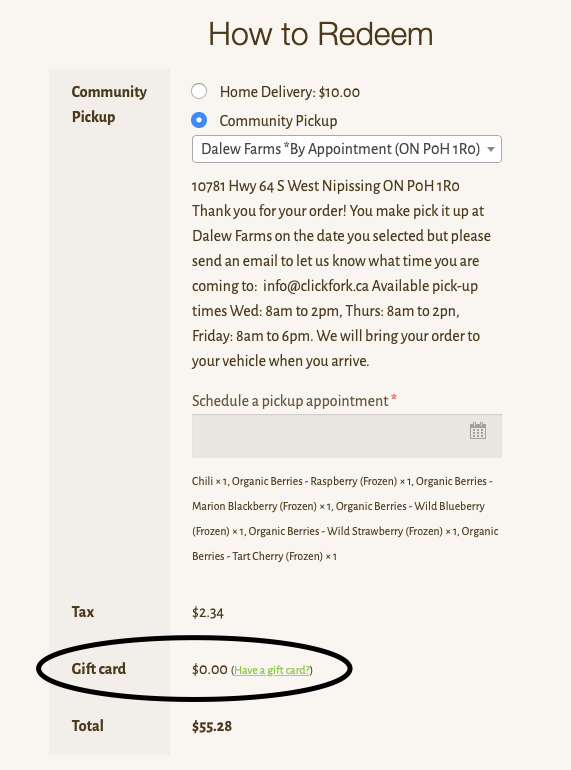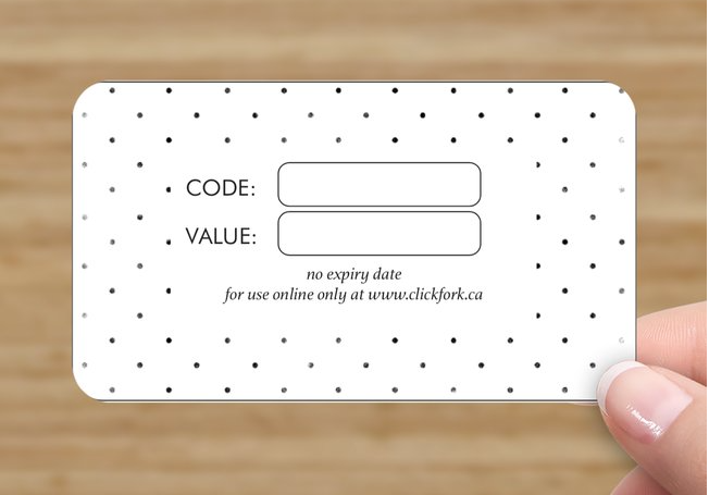 NEW: You can now choose to pick up a physical gift card with your regular Click Fork order or choose virtual delivery (by email).