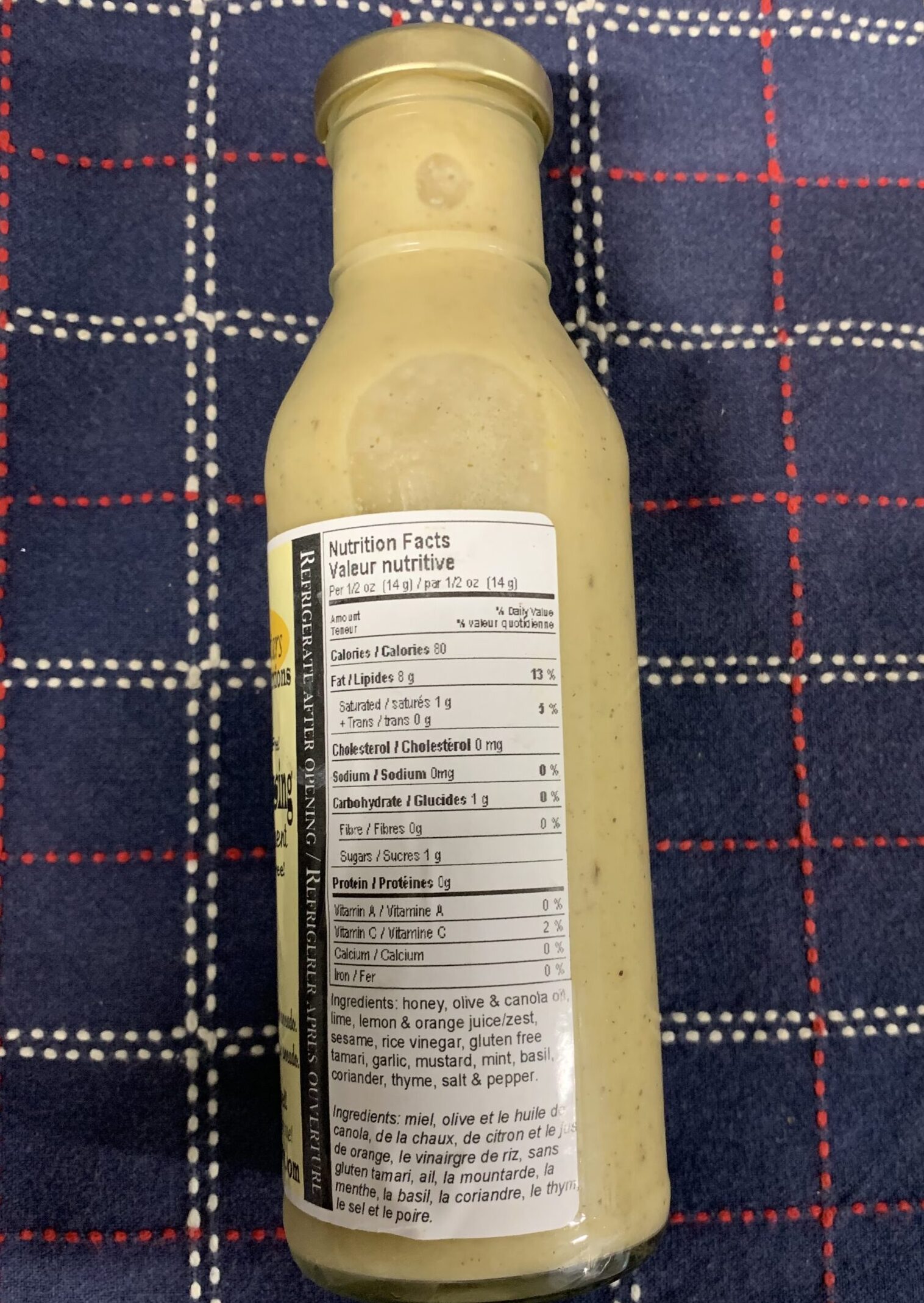 Gluten-free, dairy-free. Fresh lime, lemon, and orange juice combined with sesame oil and sweet rice wine vinegar. Hits of mint, thyme, and honey. Excellent with avocado and delicious with bean salads.