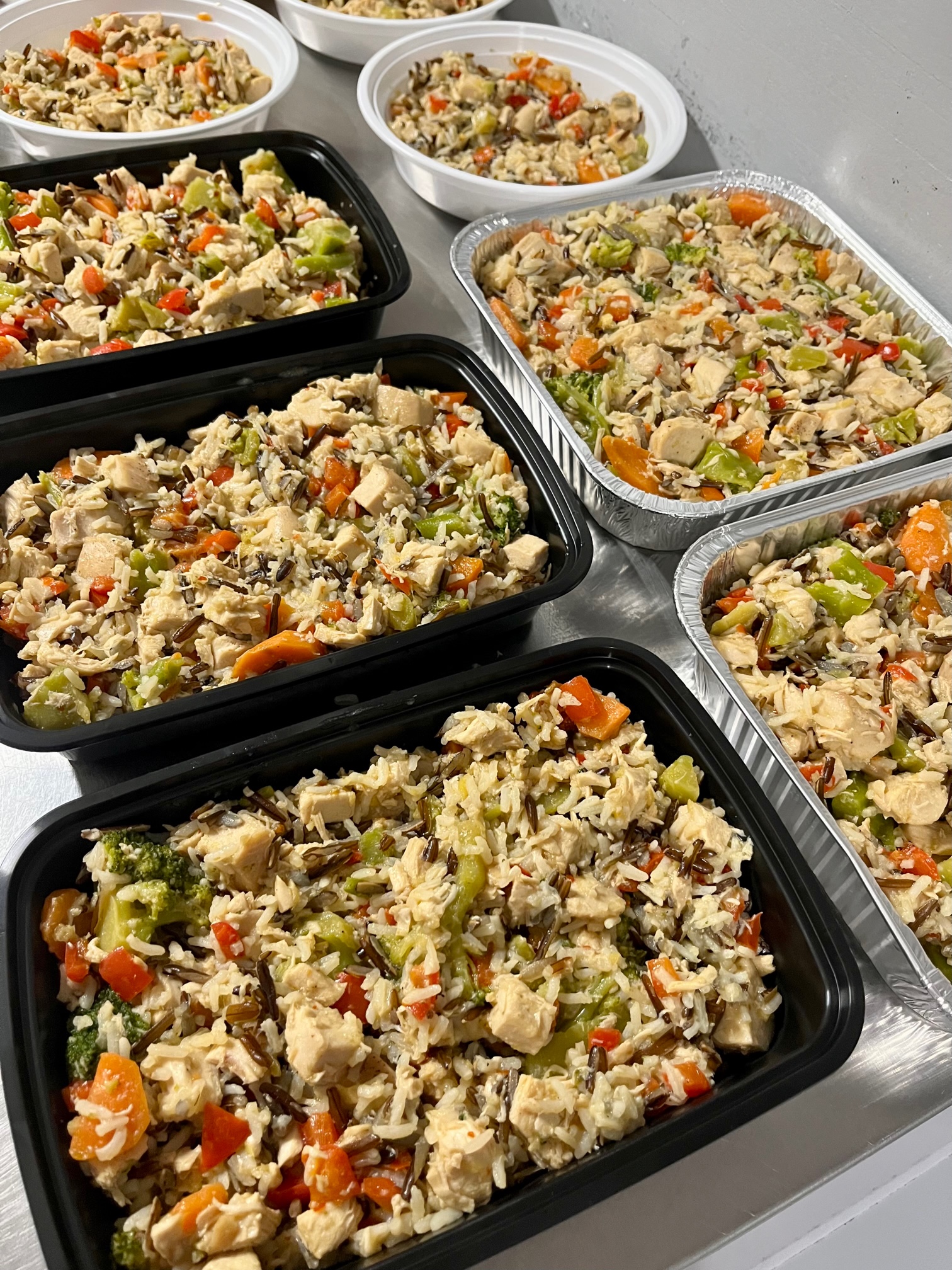Ingredients: Organic chicken, Ferme La Binette chicken broth, water, broccoli, red bell peppers, Field Good Farms carrots, minced ginger, minced garlic, Creekbend Farms Honey, organic soya sauce, sesame oil, crushed red pepper flakes, pink himalayan salt, pepper, Jasmine Rice & Wild Rice