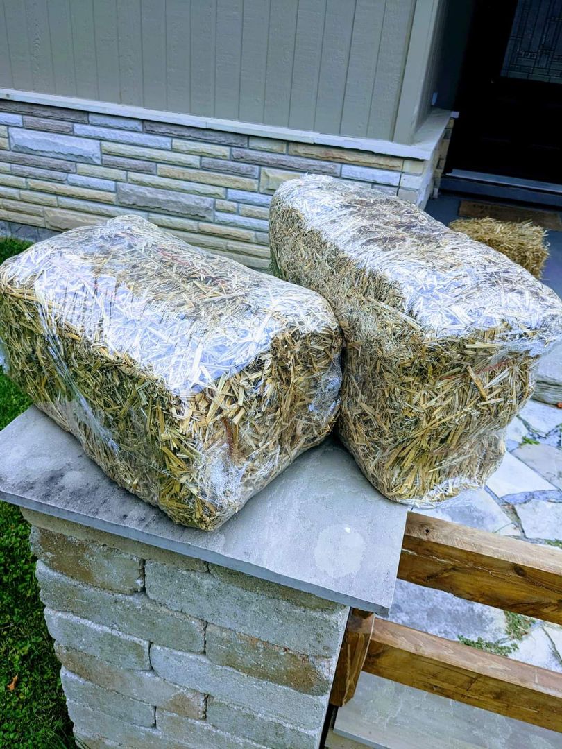 Straw or Timothy hay bales, perfect for decorations or pets! 11″ x 9″ x 20″ long approx. Available shrink wrapped or not.