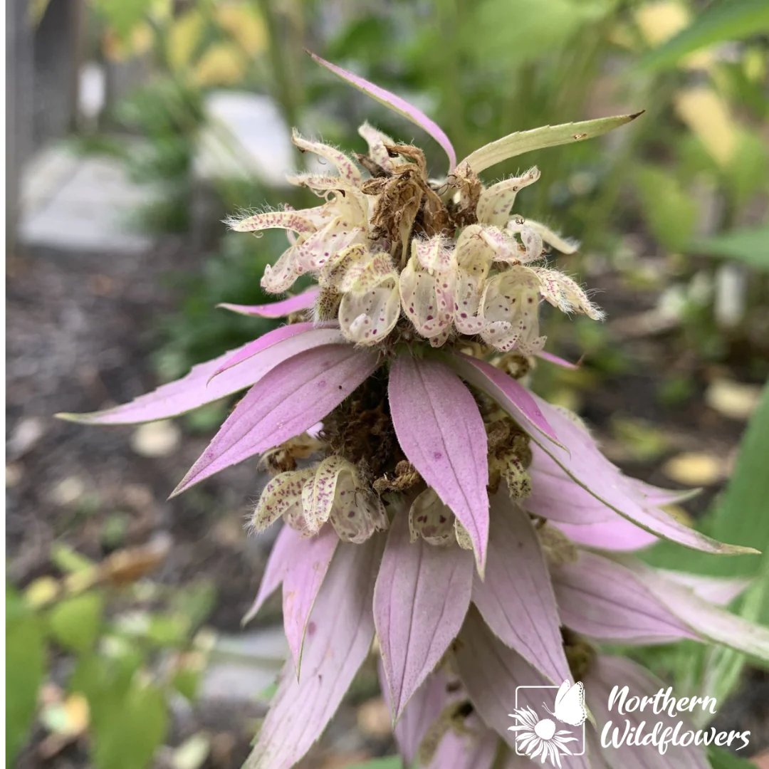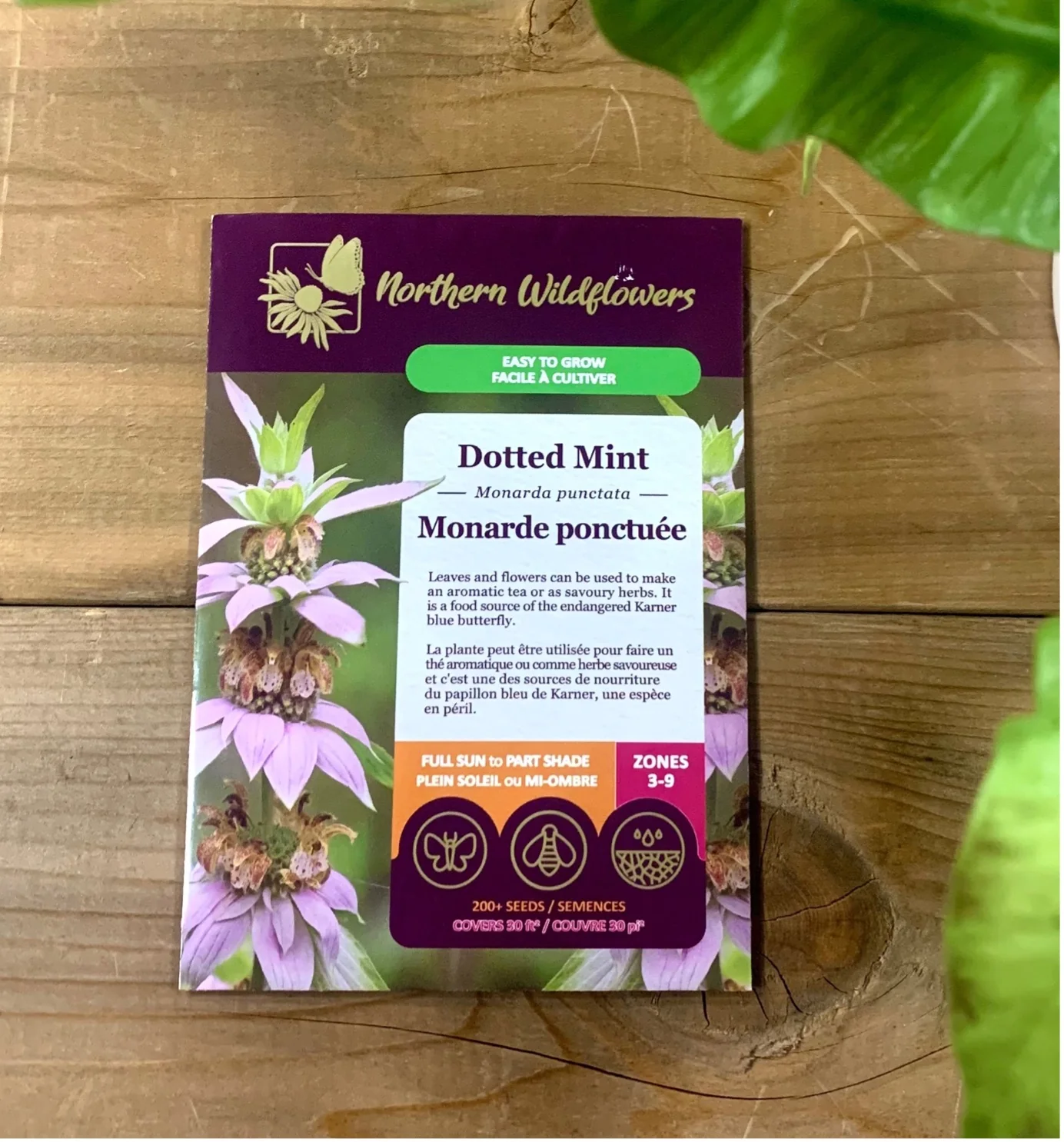 Dotted Mint (Monarda punctata) is beautiful, undemanding and edible. Native to the Eastern portion of Canada and the United States, the plant’s leaves and flowers can be used to make an aromatic tea or as a savoury herb. Dotted mint is drought tolerant and although it prefers sand and loam, it will tolerate clay. Upon closer inspection, you’ll notice that the plant has a row of flowers, and below what appear to be flower petals are actually colourful leaves, which may be purple, pink, green, white or yellow. Dotted mint is a favourite food source of the endangered Karner Blue Butterfly.