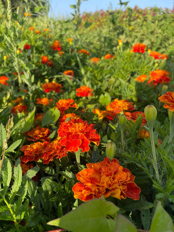 Tagetes patula. Beautiful annual flower that is great at detering pests and nematodes. Also attracts beneficial insects.