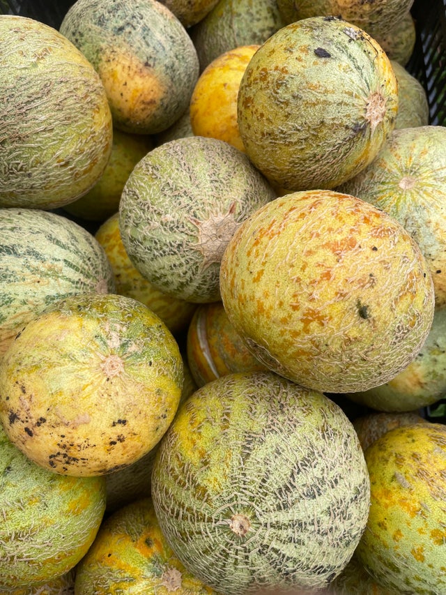 The earliest melon in our garden. This small melon has a tender yellow flesh with a floral aroma and taste. A great addition to the garden