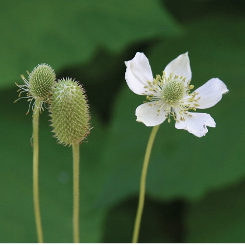 Thimbleweed (Anemone virginiana) is a great spring plant with delicate white and yellow flowers. After flowering the seed heads add a lot of personality to the garden, they resemble elongated thimbles that persist into the winter.