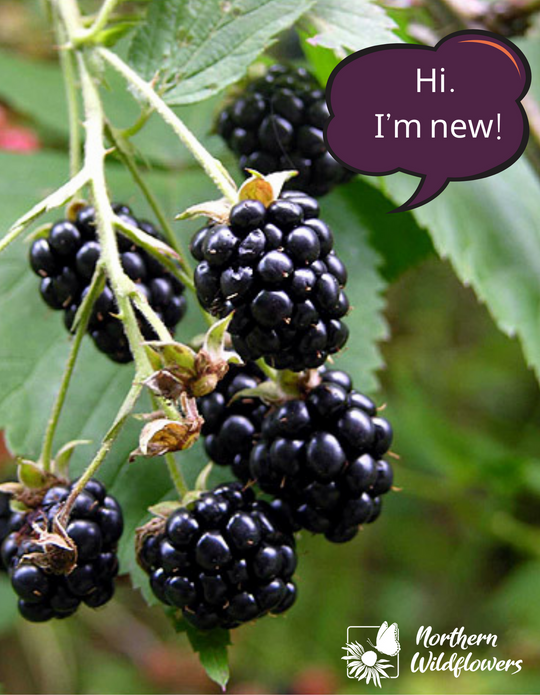 Wild Blackberry (Rubus allegheniensis) produces delicious soft wild blackberries that are nothing like the grocery store variety. The plant has a colony forming habit and will do well in acidic areas and will tolerate some shade and drought. Wild blackberry is of particular value for wildlife, providing an important food source for song birds, game birds and mammals.